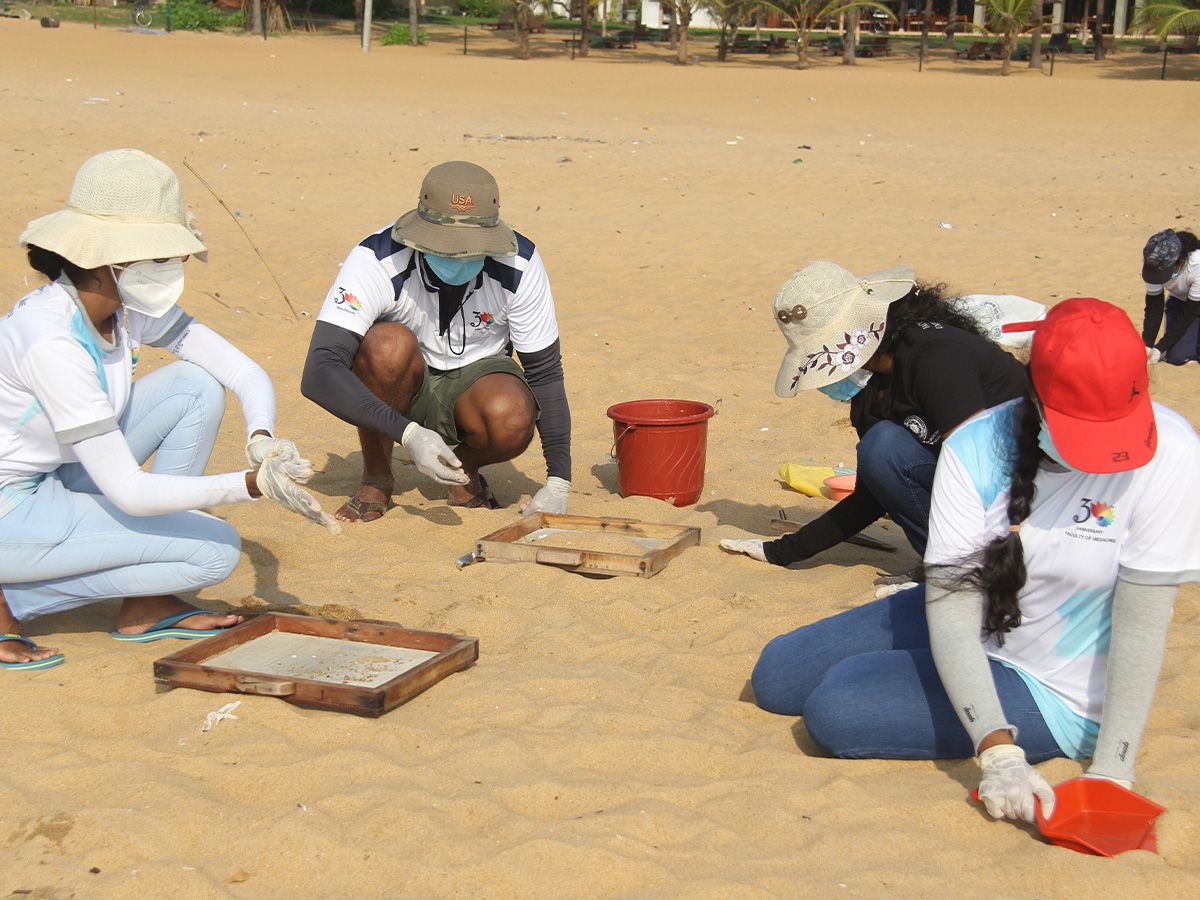 The Green Practice Committee (GPC) of the Faculty of Medicine (FOM), University of Kelaniya (UOK), organized a Beach Cleaning Day at Negombo Beach as part of their ongoing environmental initiatives. This volunteer-driven event focused on removing plastic debris and nurdles from the beach, fostering a sense of responsibility among undergraduates and staff. The initiative aimed not only to clean the environment but also to strengthen communication and teamwork among participants, paving the way for future environmental efforts.